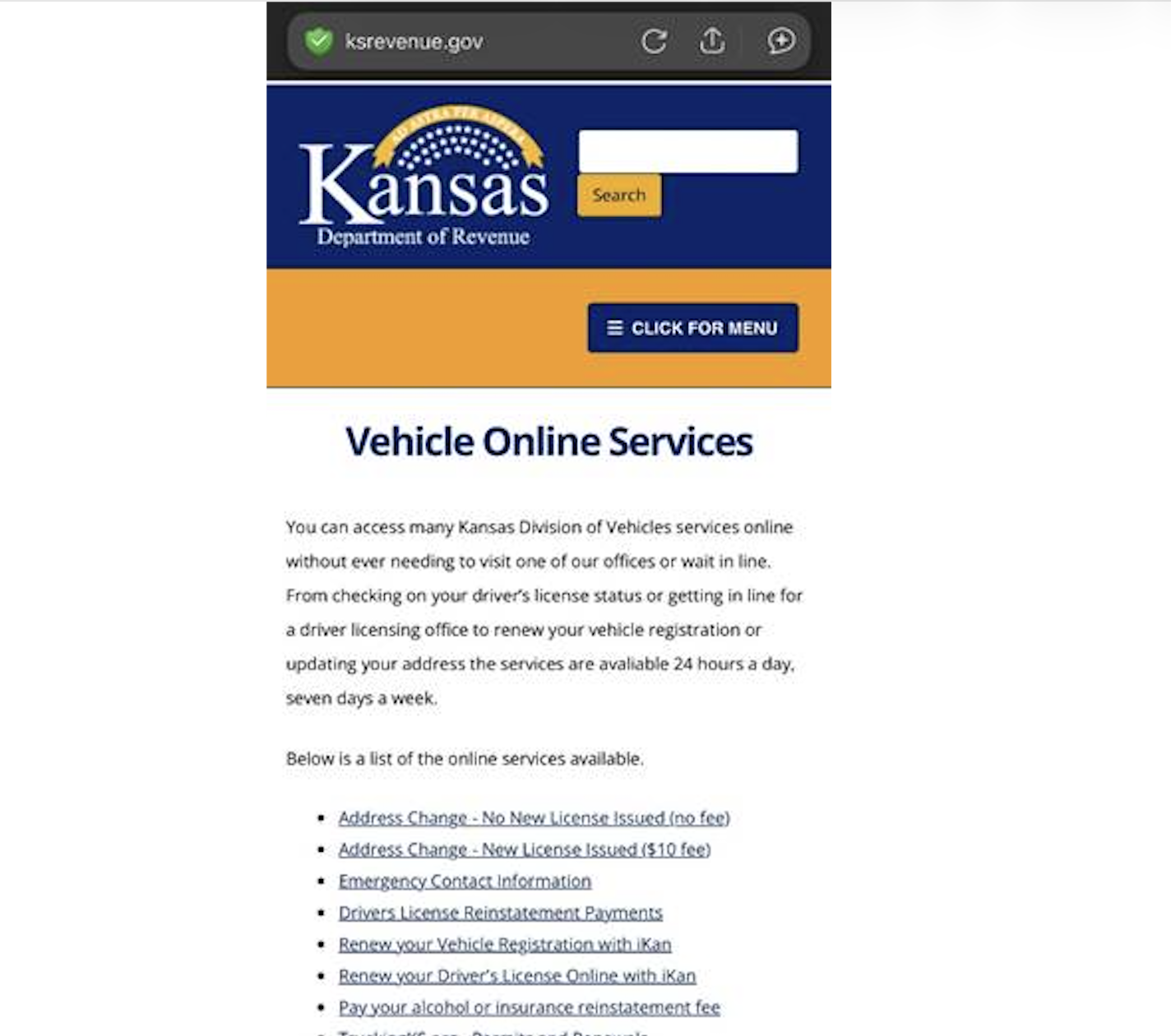 - Verify directly. If you are concerned about your license status, visit the official website at www.ksrevenue.gov/dovdccontact.html by typing it directly into your browser, or call the DMV at 785.296.3671.