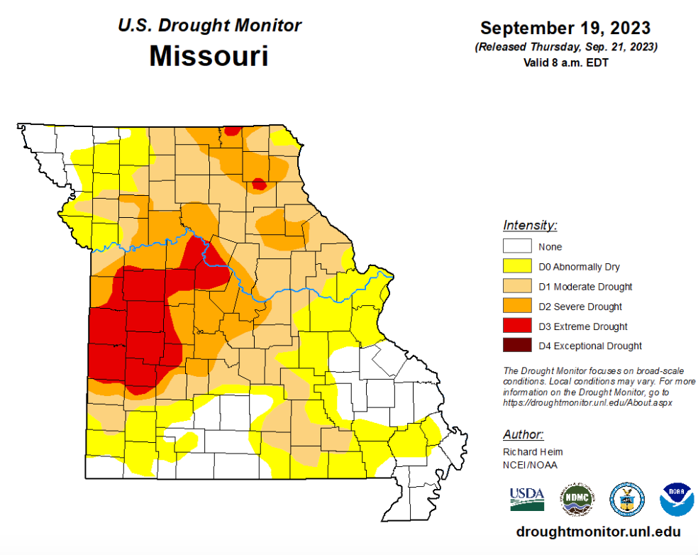 The U.S. Drought Monitor shows 79.29% of Missouri is experiencing drought conditions, with 10.71% of the state in extreme drought, according to a report released this week.