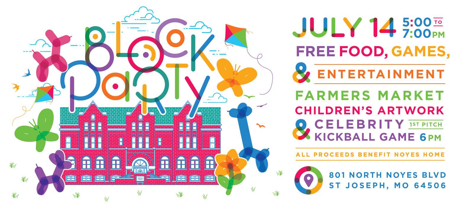 The Noyes Home block party at 801 North Noyes Boulevard begins at five o’clock this afternoon and runs until 7pm.